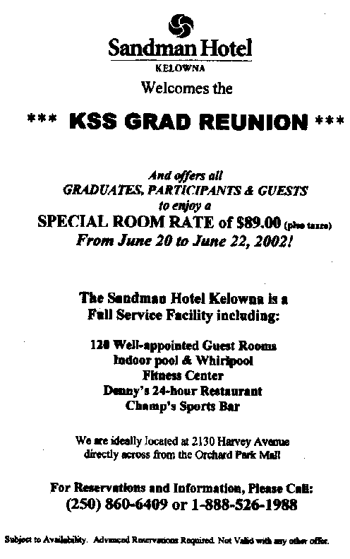 Sandman Hotel Telephone.. (250) 860-6409 or 1-888-526-1988