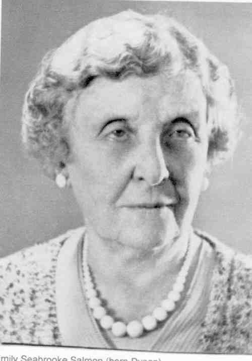 Emily Seabrooke Dyson - looks like she left Alexander Salmon and her daughters (2 or 3 born in India) and married again to Anthony Baldwin who was born in India and a Major in the Manchester Regiment of Infantry. She by 1901 had 2 more daughters, Mary, age 3 and born in London, Betty, age 1 and born in Stalybridge, Cheshire which is where they are living at time of 1901 Census. (Maureen Lussier, Oct 2004)